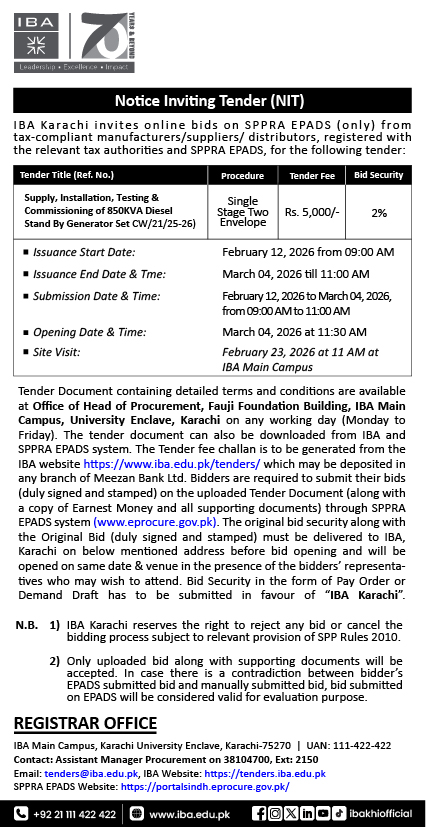 Supply, Installation, Testing & Commissioning of 850KVA Diesel Stand By Generator Set