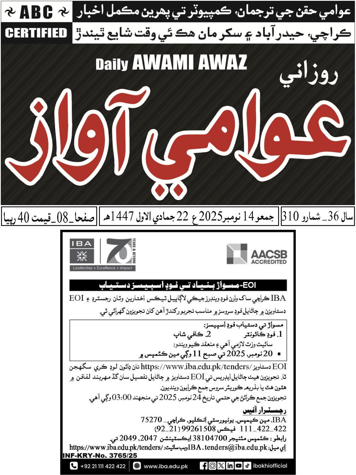 EoI - Food Space Available on Rental Basis (Tribune Ad | Awami Awaz | EoI Document) |