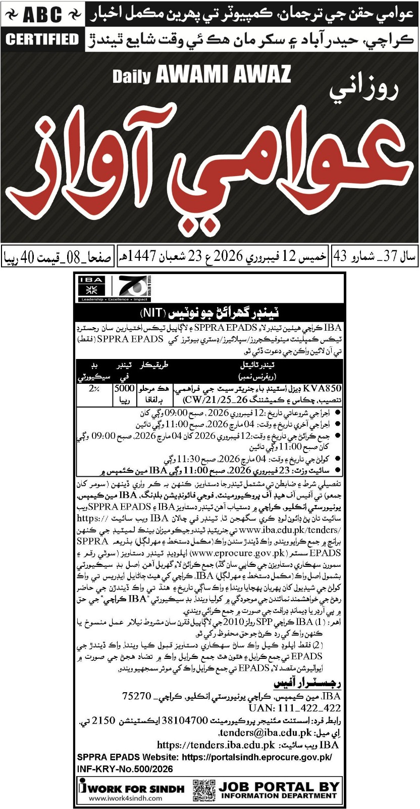 Tender Name & Ad