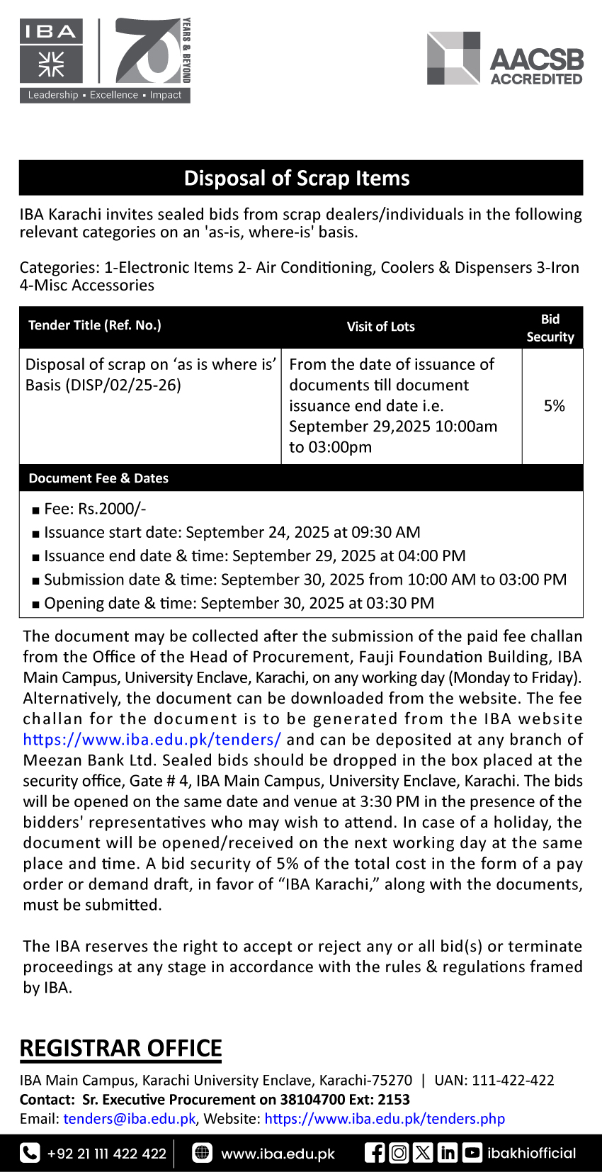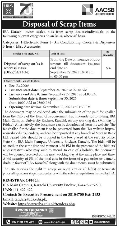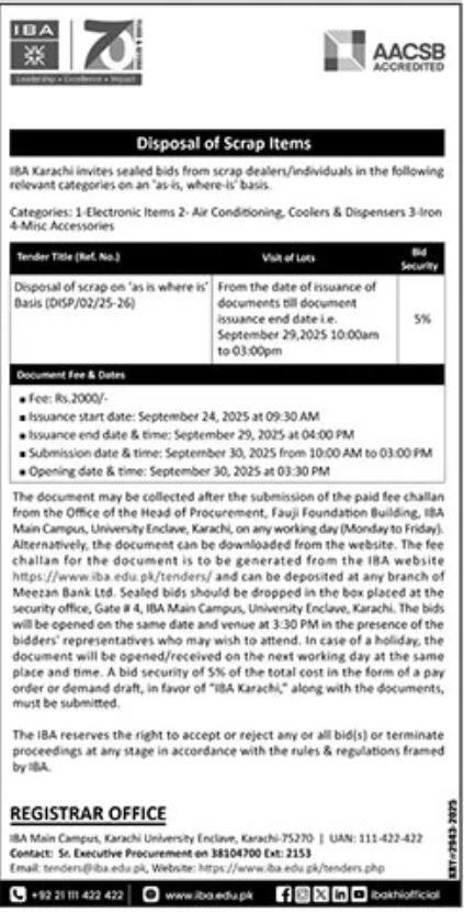 Disposal of Scrap Items- Tender Document DISP_02_25_26 (NIT | Jang Ad | Awami Awaz Ad | Express Tribune Ad) |